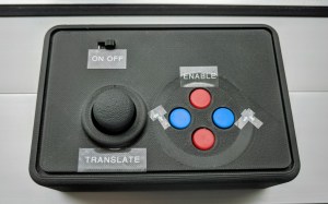 The wireless controller uses a joystick shield which provided a easy to implement human interface with a joystick and a few buttons. These are exposed through the 3D printed controller housing.