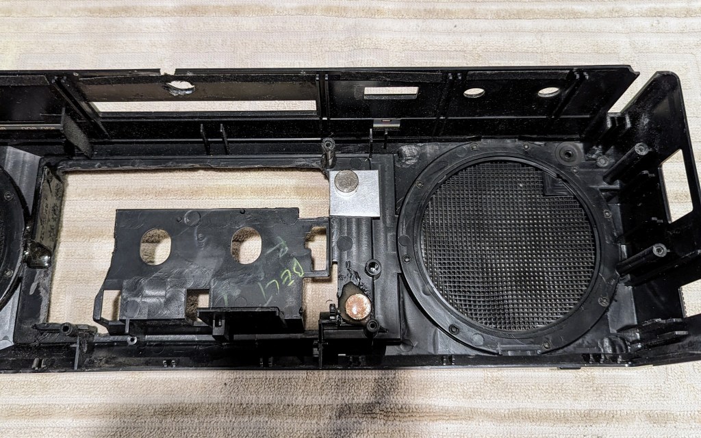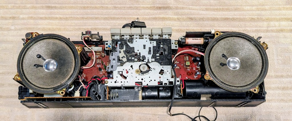 Next the cassette tape deck is removed, which exposes the amplifier below.