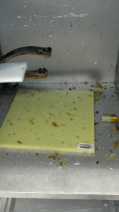 But not only are the magnet wire fragments scattered around, but some are embedded into the aluminum: