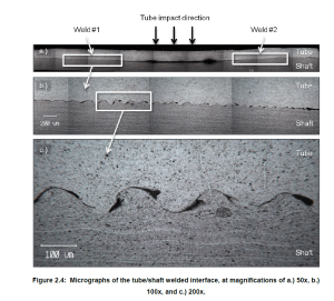 Aside: In the weld interface a wavy interface typically results, which I showed in my thesis: